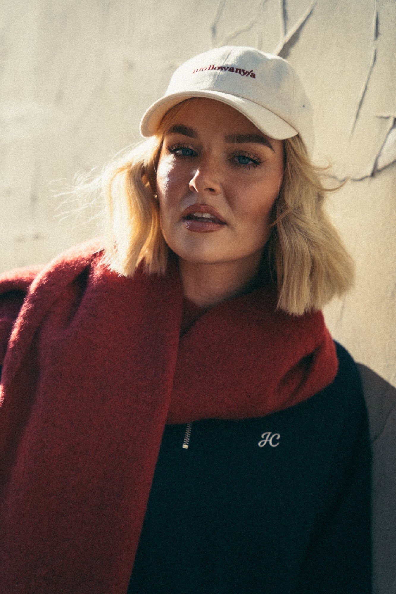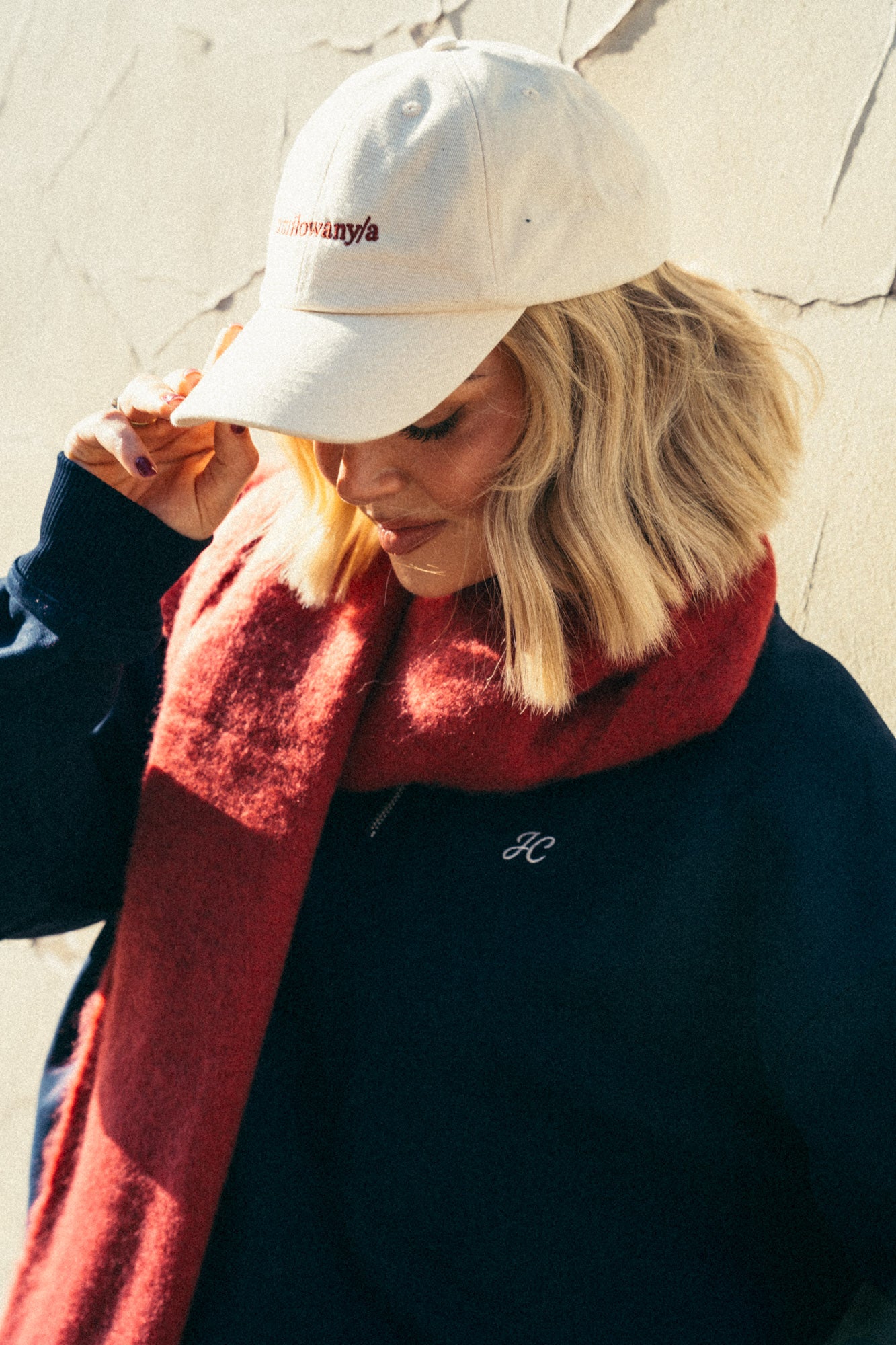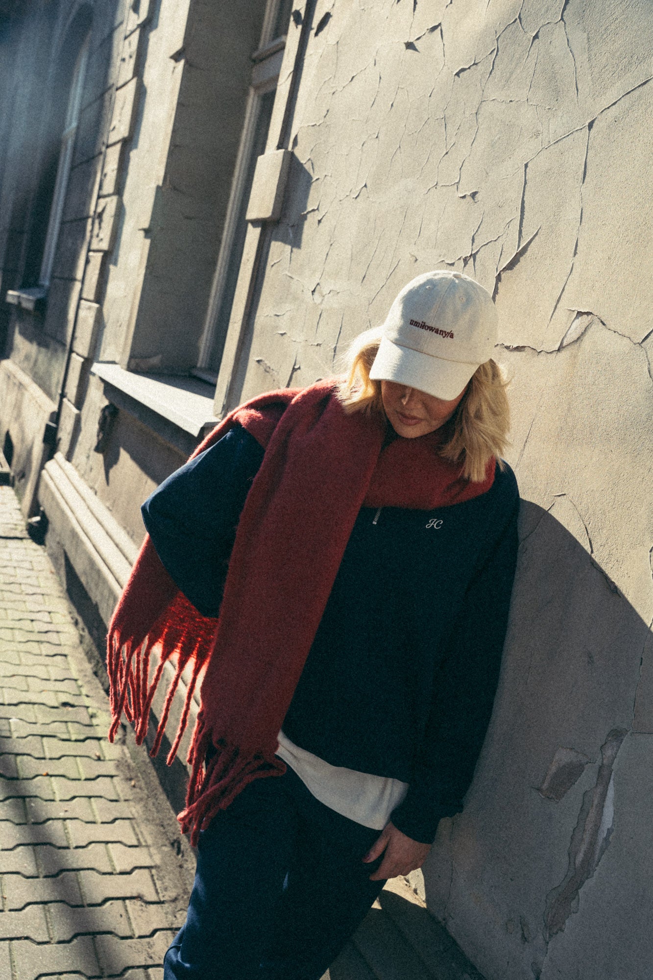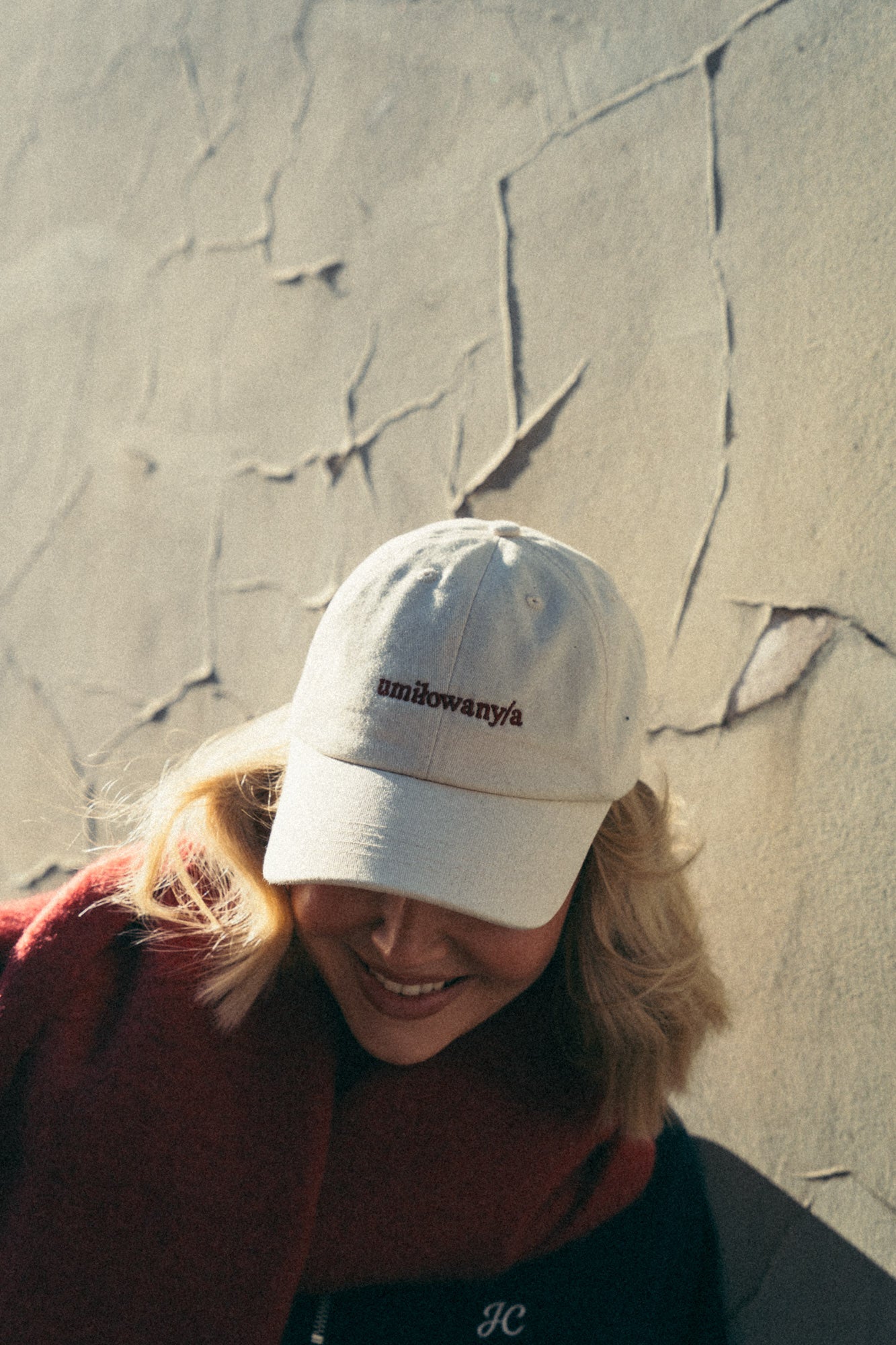 Haft „umiłowany/a” w kolorze burgundowym. Regulowany pasek z metalową sprzączką pozwala idealnie dopasować rozmiar.